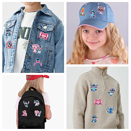 Toppe Termoadesive Bambini 16 Pezzi Toppe Termoadesive con Stitch Toppe Adesive per Tessuti Toppe Pantaloni Bambini Adulto per Tessuti Giacche Zaini Jeans Vestiti