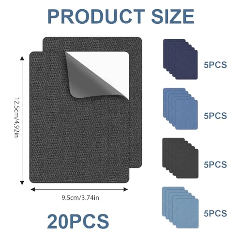 【La confezione include】- Riceverai 20 toppe per jeans, più 4 colori dal chiaro allo scuro per abbinarli a vestiti di colore diverso. La dimensione 12,5×9,5 cm ti consente di rattoppare fori piccoli e grandi e creare il tuo disegno.