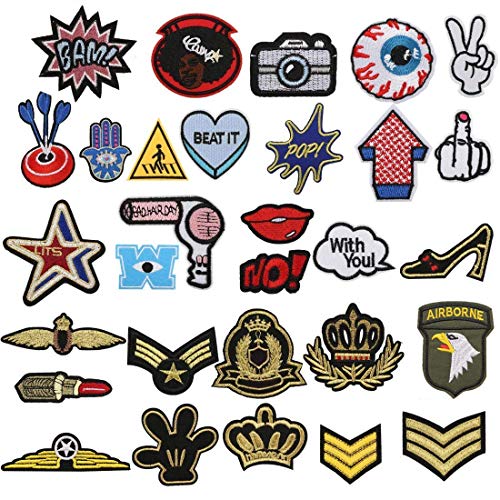 Toppe Termoadesive, Tatuer Patch da Ricamo Patch Di Ferro 30PCS Adesivo Patch, Ricamo Cucito Applicato, Distintivo Cucito Patch per Giacche, Zaino Jeans Abbigliamento T-shirt DIY-Non Casuale