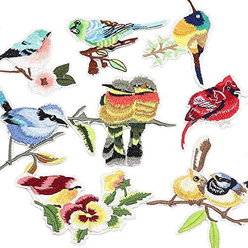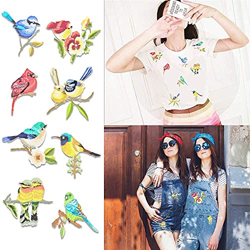 8 toppe con uccelli ricamati, con applicazione a forma di uccellini, per cucire e applicare il ferro da stiro, per magliette, cappotti, borse