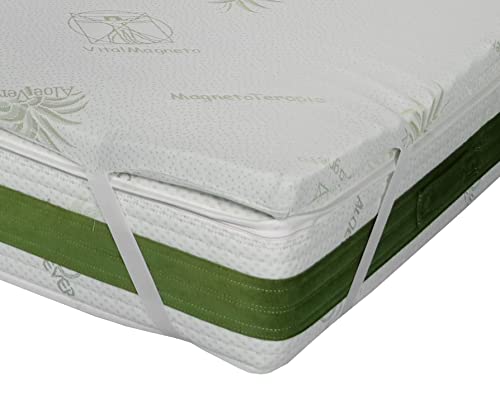 Topper CORRETTORE in Memory Foam Fresco da 5 CM,SFODERABILE in Aloe Vera con Elastici (80 x 200 Cm Singolo)