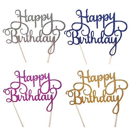 Topper per torta di buon compleanno, confezione da 4 decorazioni per cupcake di compleanno con glitter dorati.