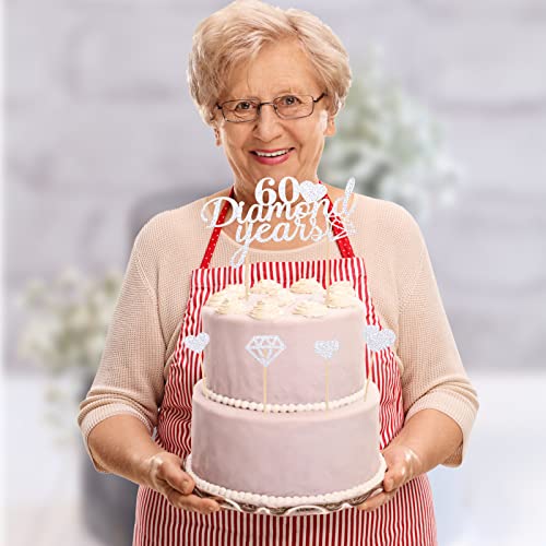 Set di Topper per Torta in Colore Argento per il 60° Anniversario di Matrimonio Decorazioni per Cupcake Topper di Diamante Topper a Cuore e Topper di 60 Diamond Years,13 Pezzi in Totale