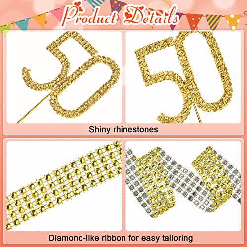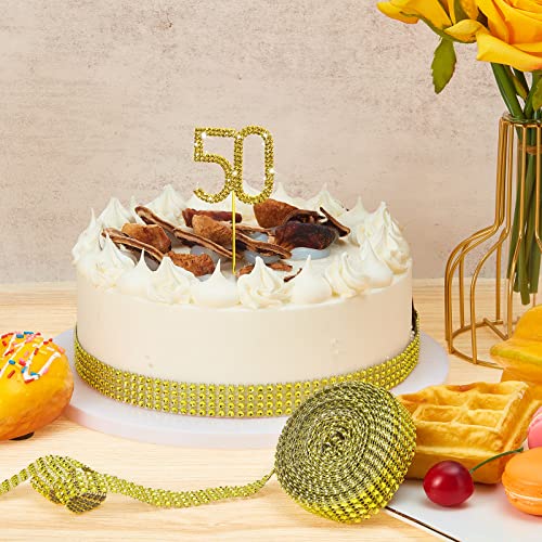 Topper per Torta di Compleanno con Numero 50 Dorato e Nastro Diamante con Strass Topper per Anniversario di Matrimonio 50 Decorativo Nastro Diamantato in Acrilico Oro Decorazioni per Festa