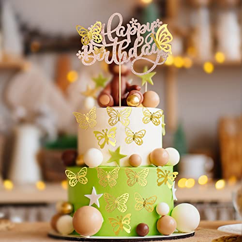 25 topper per torta a forma di farfalla, per torta di buon compleanno, decorazione per torta di compleanno, decorazione per torte a forma di farfalla, oro rosa