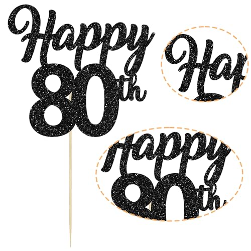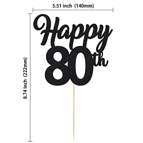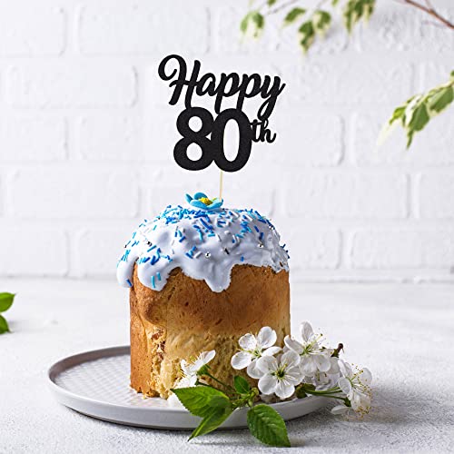 3 topper per torta Happy 80th nero glitterato numero 80 ottanta compleanno decorazioni per torta per saluti a 80 anni 80° compleanno, anniversario di matrimonio forniture per feste