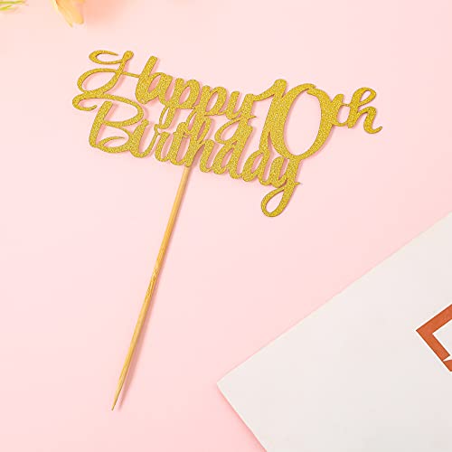 Topper per torta con scritta "Happy 10th Birthday", colore oro glitterato per 10 anni, decorazione per feste di compleanno, decorazione per feste di compleanno (oro)