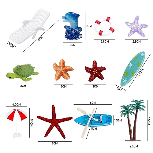 【Contenuto del set】 Riceverai 15 pezzi di decorazioni per torte paesaggistiche in miniatura, che sono: 1 * albero di cocco, 1 * ombrellone, 2 * sedia a sdraio, 1 * salvagente, 4 * stelle marine, 1 * barca, 2 * pasta di legno, 1 * tartaruga marina, 1 * tavola da surf, 1 * delfino, quantità sufficiente, forma squisita, per soddisfare le esigenze quotidiane.