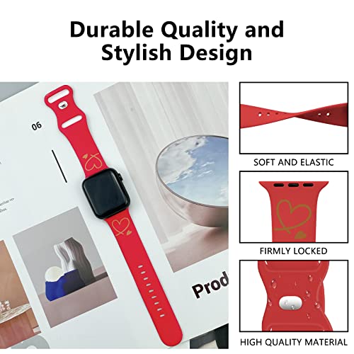 TopPerfekt Cinturino compatibile con cinturini Apple Watch, 41 mm, 40 mm, 38 mm, morbido silicone oro con motivo a cuore stampato per iWatch serie SE 7, 6, 5, 4, 3, 2, 1, per donne e uomini