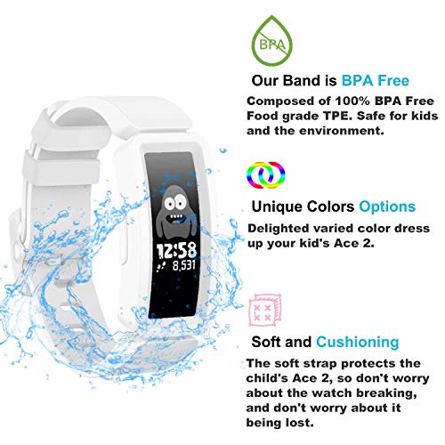 TopPerfekt - Cinturino Compatibile con Fitbit Ace 2 per Bambini 6, in Morbido Silicone, Impermeabile, per Ragazzi e Ragazze, Compatibile con Fitbit Ace 2 Cinturino (1-Bianco)