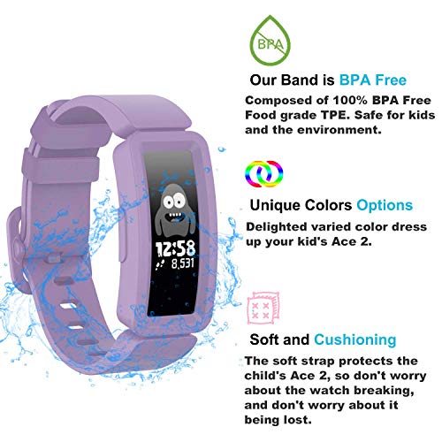 TopPerfekt - Cinturino Compatibile con Fitbit Ace 2 per Bambini 6, in Morbido Silicone, Impermeabile, per Ragazzi e Ragazze, Compatibile con Fitbit Ace 2 Cinturino (1-Viola)