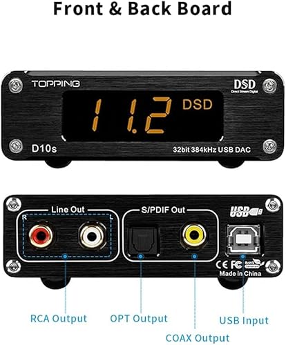 TOPPING D10s DAC PCM 384kHz ES9038Q2M XMOS XU208 USB Mini Desktop HiFi Audio DAC Decoder (Nero)