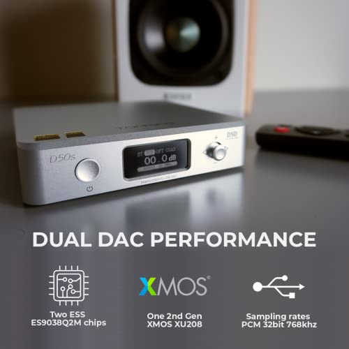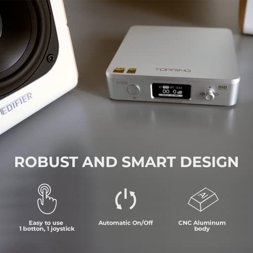 【DESIGN COMPATTO E FUNZIONALE】 L'elegante e robusto case in alluminio del Topping D50S è lavorato a CNC da un unico pezzo di metallo, che limita notevolmente l'impatto delle interferenze sui circuiti. Inoltre, ha due pulsanti, il primo è un pulsante singolo, e il secondo è un joystick a 4 vie. Un telecomando è anche incluso.