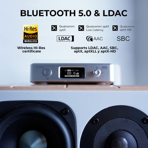 【ALTE PRESTAZIONI E PREAMPLIFICATORE】 Questo DAC è dotato di due amplificatori operazionali SoundPlus OPA1612 e un TI LME49720, che formano il filtro passa-basso del dispositivo. Offre anche un volume regolabile. Pertanto, può funzionare come un combo DAC + preamplificatore ed essere collegato direttamente a un amplificatore o a casse attive.