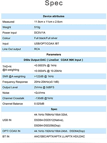 【ESPERIENZA AUDIO AVANZATA】 Il Topping D50S è composto da due chip di conversione ESS ES9038Q2M che supportano alte frequenze di campionamento fino a 32bit PCM 768kHz, DSD512 e DoP64. Inoltre, utilizza un eccellente chip XMOS XU208 che permette all'ingresso USB di supportare file fino a 32bit PCM 768kHz e DSD512. Questo DAC assicura una riproduzione accurata e ricca.