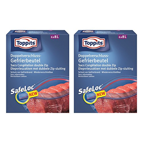 Toppits - Sacchetti a doppia chiusura 8 l (33 x 38 cm), 2 confezioni da 6 sacchetti