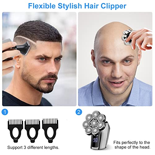 Topretty Rasoio Elettrico Uomo, 5 in 1 Rasoio Elettrico Testa Calva Uomo Wet & Dry Rasoio Barba Ricaricabile Rasoio Rotante da Uomo per Capelli Barba Naso Orecchie e Viso Pulito Rifinitore a Scomparsa