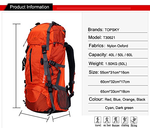 Topsky Outdoor Sports Zaino Impermeabile Campeggio Escursionismo Arrampicata 40l 50L 60L Unisex da Viaggio della Confezioni da Trekking, Uomo, 30621, Red