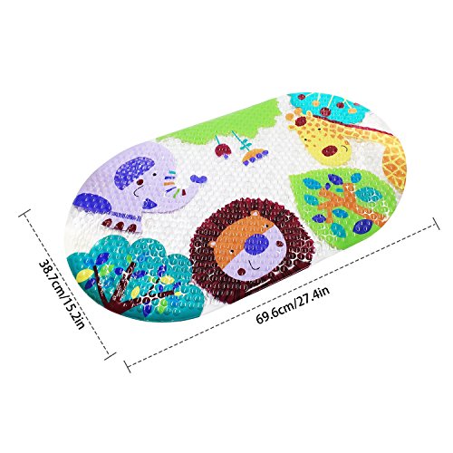 Topsky Tappetino antiscivolo, da doccia o vasca per bambini, con ventose e stampa di animali a colori vivaci, 39 cm x 69 cm Colorful Zoo