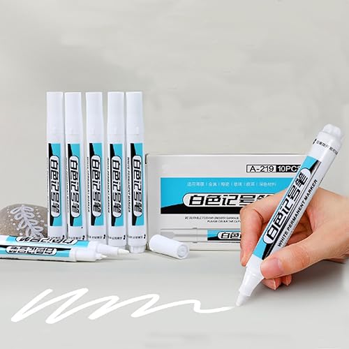 Topspitgo 10 Pezzi Bianco Pennarelli Acrilici Punta Fine Pennarelli Acrilici per Dipingere Sassi Legno Tessuti Vetro Pneumatico Pennarello Indelebile Bianco per Tessuti Indelebile