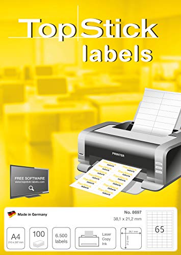 TopStick Etichette Universali, 38,1 x 21,2 mm, Etichette Adesive A4 per Stampante, 65 Etichette per Foglio, Bianco