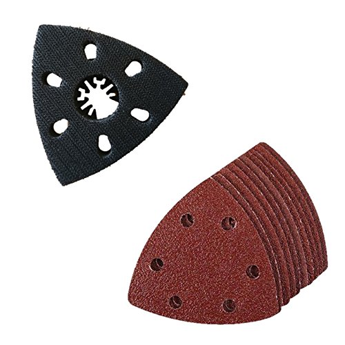 Il kit include 2 dischi abrasivi grandi (90 mm x 90 mm) e un assortimento di fogli abrasivi di qualità mista (grana 40/80/120/180/240)