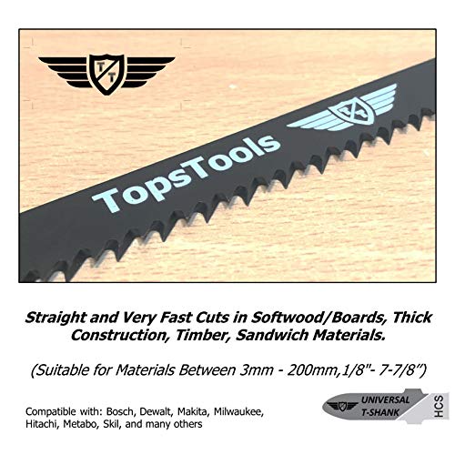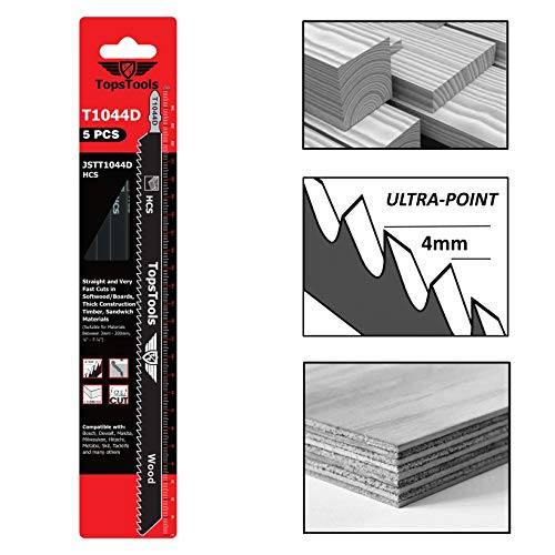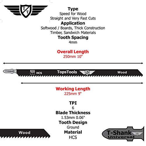 TopsTools JSTT1044D T1044D Lame per seghetto alternativo, lunghezza 250 mm, taglio veloce e pulito, ideali per legno, per Bosch, Dewalt, Makita, Milwaukee e molti altri marchi