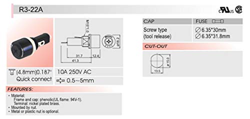 Topteng SCI R3-22 - Supporto per fusibili in vetro 6 x 30 mm, 10 A, 250 V