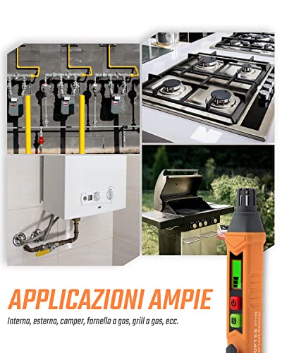 【Rilevatore di perdite di gas combustibili】 Il TopTes PT199 è adatto per GPL, metano, etano, propano, butano, gas naturale, gas di carbone, combustibile a gas, gas naturale liquefatto, ecc., e individuerà esattamente una perdita, riducendola il rischio di perdite di gas e mantenere la tua famiglia e la tua proprietà al sicuro