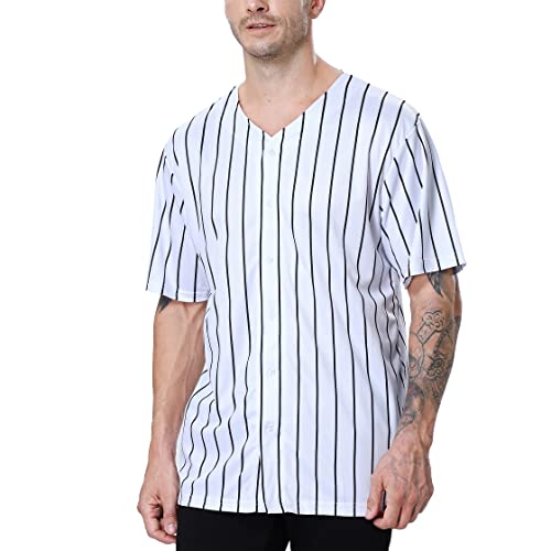 TopTie Maglia da baseball gessata personalizzata per uomo e ragazzo, bottone giù jersey aggiungere il tuo nome e numero