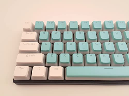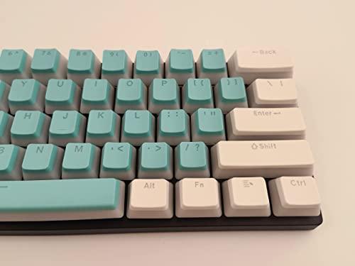 Topwang Keycaps, 61 tasti Doubleshot Traslucido OEM Profilo PBT Full Keycap Set Retroilluminazione Tastiera Meccanica Keycap per 60% Cherry Gateron Kailh Switch Tastiera Meccanica (Bianco e Ciano)