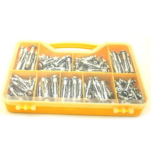 TOPWAY Kit di Ancoraggio a Parete Cava 140 pezzi, Kit di Fissaggio a Parete Cava per Cavità in Cartongesso in Acciaio Viti Tasselli set di Assortimento 405505