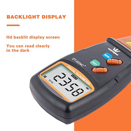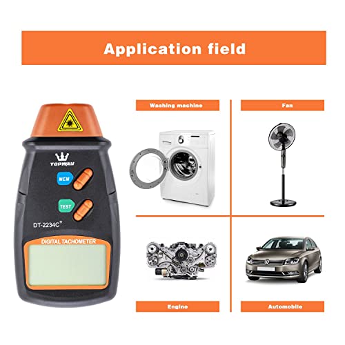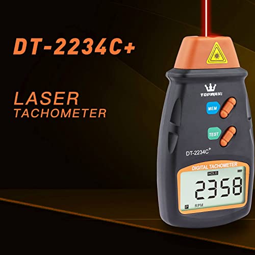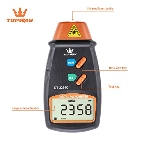 TOPWAY Tachimetro Digitale, DT-2234C + Contagiri Digitale Tester Senza Contatto con LCD Display, Raggio di Misurazione 2,5-99.999 RPM, per Veicoli Ruote Ventole