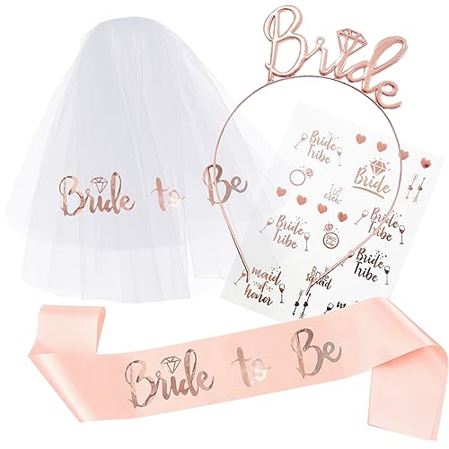 TOPWAYS Addio al Nubilato e Celibato Decorazione Set, Gadget Addio al Nubilato Sposa Bride to be Sash Decorazione Fascia e Velo da Sposa Accessori per Addio al Nubilato Sposa (Bride oro rosa)