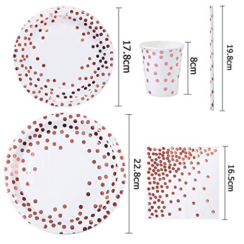 TOPWAYS Oro Rosa Polka Dot Carta Piatti Stoviglie Compleanno Set, carta piatti bicchieri tovaglia stoviglie per feste di decorazioni compleanno Matrimoni Anniversari, BBQ Picnic Campeggio 16 Ospiti