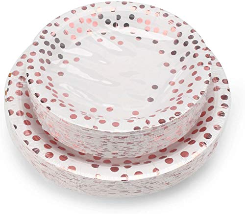 TOPWAYS Rosa Oro Polka Dot Piatti Carta, 48 pezzi carta servizio piatti monouso piatti stoviglie per feste di decorazioni compleanno bambini uomini donne, Matrimoni, Decorazioni Anniversari 9 pollici