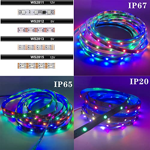 Individualmente Addressable.Dream striscia programmabile LED a colori pieni, WS2812B led, WS2812B IC Costruito in 5050SMD. Effetto statico, effetto di inseguimento, effetto speciale ecc. Display di luminosità 256 e display a colori a 24 bit.