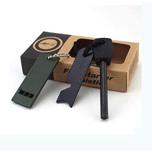 Toquanyue Outdoor Flint Fire starter Magnesium Stone Flint Firestone Striker + righello + fischietto di sopravvivenza Tool kit auto-aiuto set kit da viaggio per trekking e campeggio.
