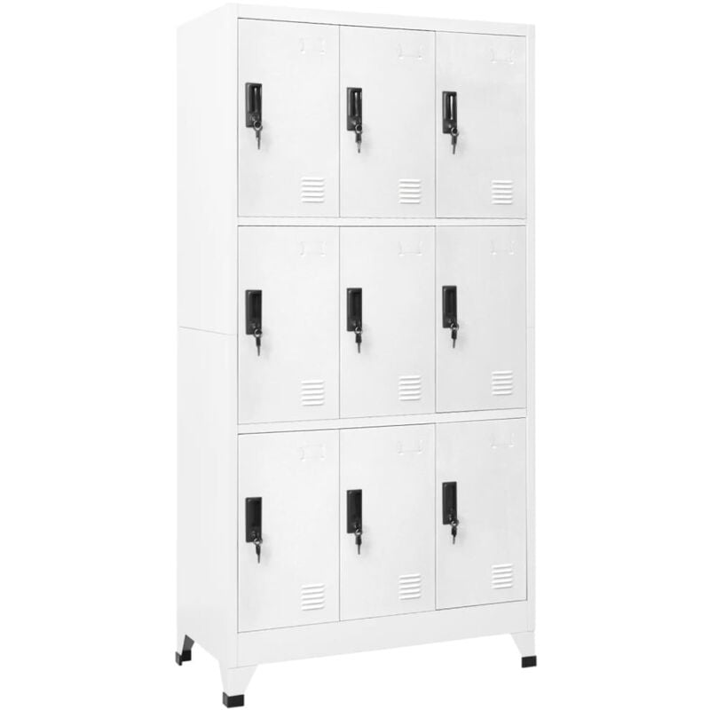 Questo armadietto a chiave ha un design moderno e sarà un'ottima aggiunta decorativa a qualsiasi stanza o ufficio. Questo armadietto è realizzato in acciaio, che lo rende resistente e facile da pulire. Ogni scomparto è dotato di una porta chiudibile a chiave con prese d'aria. L'armadietto offre ampio spazio per riporre vestiti e altri oggetti personali al sicuro. Inoltre, la targhetta porta nome e le prese d'aria consentono di disporre ordinatamente i vostri oggetti. Questo armadietto a chiave è adatto a scuole e uffici per riporre varie cose. Colore: bianco Materiale: acciaio Dimensioni: 90 x 45 x 180 cm (L x P x A) 9 ante con serratura (2 chiavi incluse per ogni anta) Con prese d'aria e portatarghette sulle porte Capacità di carico per ogni scomparto: 20 kg Capacità di carico totale: 180 kg Assemblaggio richiesto: Sì ATTENZIONE: Per evitare il ribaltamento questo prodotto deve essere utilizzato con il dispositivo di fissaggio a parete fornito. Legal Documents: Maggiori dettagli su