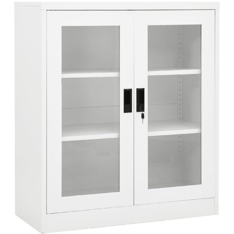 Questo armadio per ufficio, grazie al tipico design a schedario, è ideale per la conservazione dei fascicoli. Grazie ai 2 ripiani regolabili e al lucchetto, questo schedario vi consente di mantenere in ordine i documenti, suddividerli in diverse categorie e mantenerli al sicuro. Si adatta perfettamente a qualsiasi stile di arredamento dell'ufficio grazie al suo design iconico. Le esclusive porte in vetro temperato consentono di vedere facilmente il contenuto dell'armadio per trovare subito i documenti necessari. Questo armadio da ufficio è realizzato in acciaio, materiale che rende il prodotto resistente e facile da pulire. Colore: Bianco Materiale: Acciaio, vetro temperato Dimensioni: 90 x 40 x 105 cm (L x P x A) Con 2 ante, 2 maniglie e 2 ripiani regolabili Inclusa 1 serratura e 2 chiavi Peso massimo supportato per ripiano: 30 kg Capacità di carico totale: 60 kg Assemblaggio richiesto: Sì ATTENZIONE: Per evitare il ribaltamento questo prodotto deve essere utilizzato con il