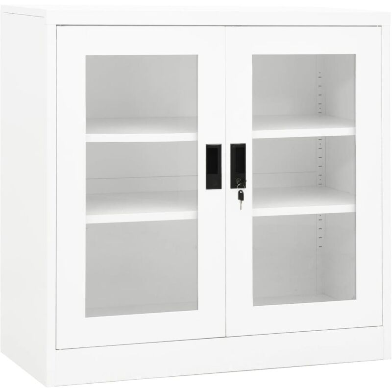 Questo armadio per ufficio, grazie al tipico design a schedario, è ideale per la conservazione dei fascicoli. Grazie ai 2 ripiani regolabili e al lucchetto, questo schedario vi consente di mantenere in ordine i documenti, suddividerli in diverse categorie e mantenerli al sicuro. Si adatta perfettamente a qualsiasi stile di arredamento dell'ufficio grazie al suo design iconico. Le esclusive porte in vetro temperato consentono di vedere facilmente il contenuto dell'armadio per trovare subito i documenti necessari. Questo armadio da ufficio è realizzato in acciaio, materiale che rende il prodotto resistente e facile da pulire. Colore: Bianco Materiale: Acciaio, vetro temperato Dimensioni: 90 x 40 x 90 cm (L x P x A) Con 2 ante, 2 maniglie e 2 ripiani regolabili Inclusa 1 serratura e 2 chiavi Peso massimo supportato per ripiano: 30 kg Capacità di carico totale: 60 kg Assemblaggio richiesto: Sì ATTENZIONE: Per evitare il ribaltamento questo prodotto deve essere utilizzato con il