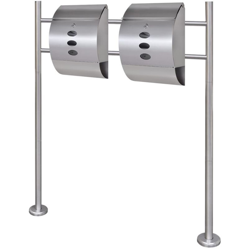 Questa casetta postale resistente in acciaio inossidabile ha un modello elegante e moderno. Il set include due casette separate sullo stesso supporto, ogni casetta ha un apertura per la corrispondenza, una serratura comoda con 2 chiavi, supporto per giornale e tre finestrini per verificare più facilmente se è arrivata la posta.La nostra casetta della posta di alta qualità sarà un'ottima scelta! La consegna include 2 casette della posta, 1 supporto, 4 chiavi e accessori di montaggio. Casetta della posta Materiale:Acciaio inossidabile Dimensioni:30 x 12 x 40 cm (L x P x A) Dimensioni apertura:30 x 3,3 cm (L x P) Con 2 supporti per giornali Con 2 chiavi per 1 casetta Asse casetta Materiale:Acciaio inossidabile Dimensioni:120 x 100 cm (A x P) La consegna include 2 casette postali con 1 supporto, 4 chiavi ed accessori di montaggio.