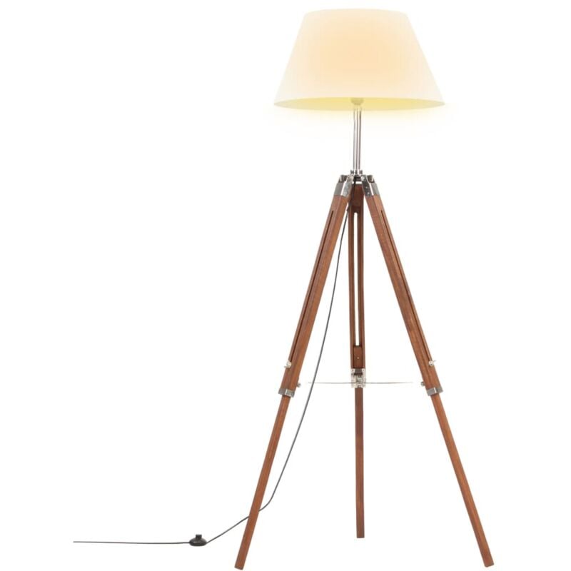 Illuminate il vostro spazio abitativo con la nostra lampada da terra a treppiede in stile retrò! Questa lampada in legno dal design vintage attira l'attenzione in ogni interno. La lampada viene fornita con una base a treppiede con un paralume in cima. Le gambe sono realizzate in legno massello di teak, garantendo un supporto sicuro. Potete regolare l'altezza da 100 cm a 141 cm per soddisfare le vostre esigenze. Ha un interruttore on / off sul cavo per facilità d'uso. La lampada da terra ha un attacco E27 per una lampadina di massimo 25 watt. Potete scegliere e installare lampadine E27 con vari colori della luce. Nota: le lampadine non sono incluse. Colore base: Marrone miele Colore paralume: Bianco Materiale: Legno massello di teak, metallo Dimensioni: 64 x 59 x (100-141) cm (L x P x A) Diametro paralume: 26 cm / 44 cm Lunghezza cavo: 180 cm Alimentazione: 220-240 V~, 50 Hz Potenza (max): 25 W Tipo di attacco: E27 Con interruttore a pedale Altezza regolabile La lampadina non è inclusa