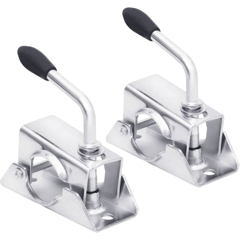 Questi pratici morsetti per ruotino sono adatti all'uso con un ruotino il cui diametro del perno misura 48 mm e offrono una lunga durata di utilizzo. Materiale resistente: Il morsetto è realizzato in acciaio zincato che lo rende resistente alla ruggine e agli agenti atmosferici. Design pratico: Il morsetto per tubi è dotato di un'impugnatura in gomma all'estremità del manico per facilitare le manovre. Si apre per consentire la rimozione rapida e semplice del telaio di supporto e della ruota. Montaggio semplice: Il raccordo per tubi è facile da montare senza modifiche e operazioni complicate, consentendovi di risparmiare tempo ed energia. Buono a sapersi: Per semplificare al massimo il montaggio, ogni prodotto viene consegnato con un manuale. Materiale: Acciaio zincato Dimensioni: 13,5 x 6,5 x 14 cm (L x P x A) Adatto per ruotini il cui diametro del perno misura 48 mm La consegna include: 2 Morsetti per ruotini