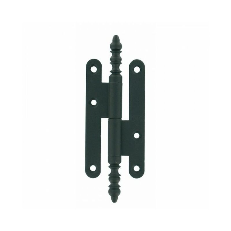 Dettagli: Cerniera piegata alla Picardia con nodo rustico decorativo, estremità quadrate utilizzate in falegnameria a sovrapposizione. Finitura: epossidica nera, acciaio patinato e verniciato e trattamento del bronzo antico su richiesta