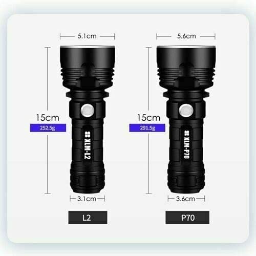 P70 Torcia, 30000-100000 lumen lampada torcia impermeabile led ad alta potenza, La Più Potente Torcia Torcia Ricaricabile USB 50w Xlm-P70 LED, per Campeggio All'aperto (singola Batteria, 25W-L2)