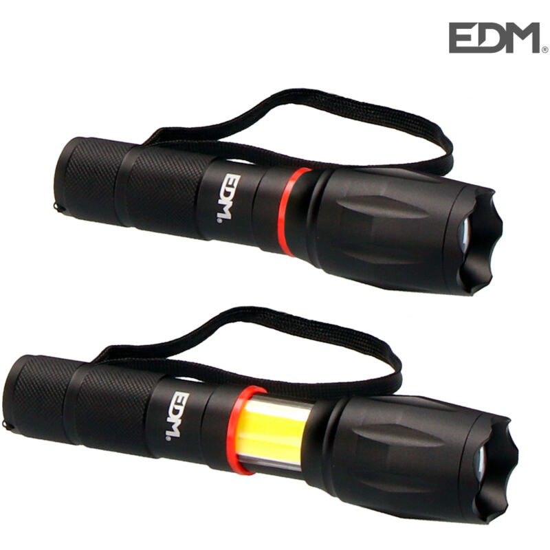 Torcia 1 led xl estensibile con zoom 1 led frontale de 5w 200lm + 1 laterale 3w 120lm. corpo de alluminio. colore nero. tipo frontale de led cree xml t6. funziona con 3xaaa (incluso) dimensioni: ø4x14cm (diametro/altezza). splashproof a. ip44. m