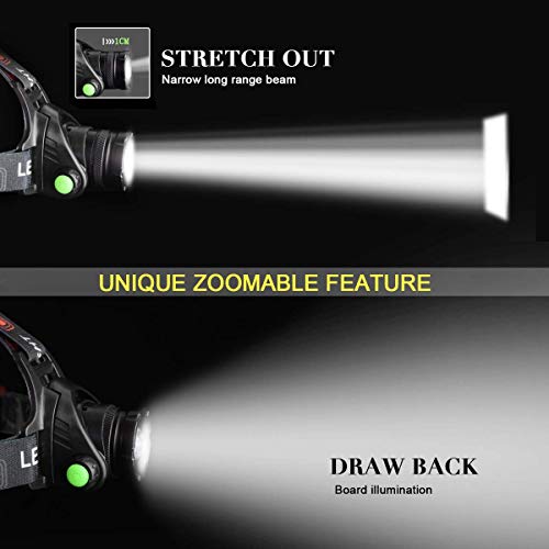 Torcia frontale, 6000 Lumen cartina impermeabile ricaricabile USB, Nero