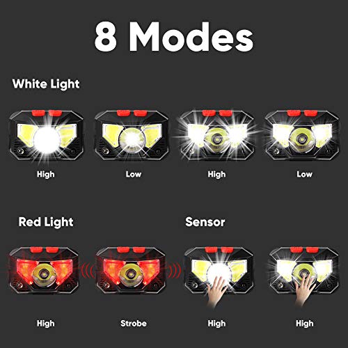 Torcia Frontale, Lampada Da Testa Portatile USB con Rilevatore Movimento, 8 Modalità LED, 6000K, 350lm, Lampada Frontale Led Ricaricabile Impermeabile per Campeggio, Escursionismo, Pesca, 2 Pezzi