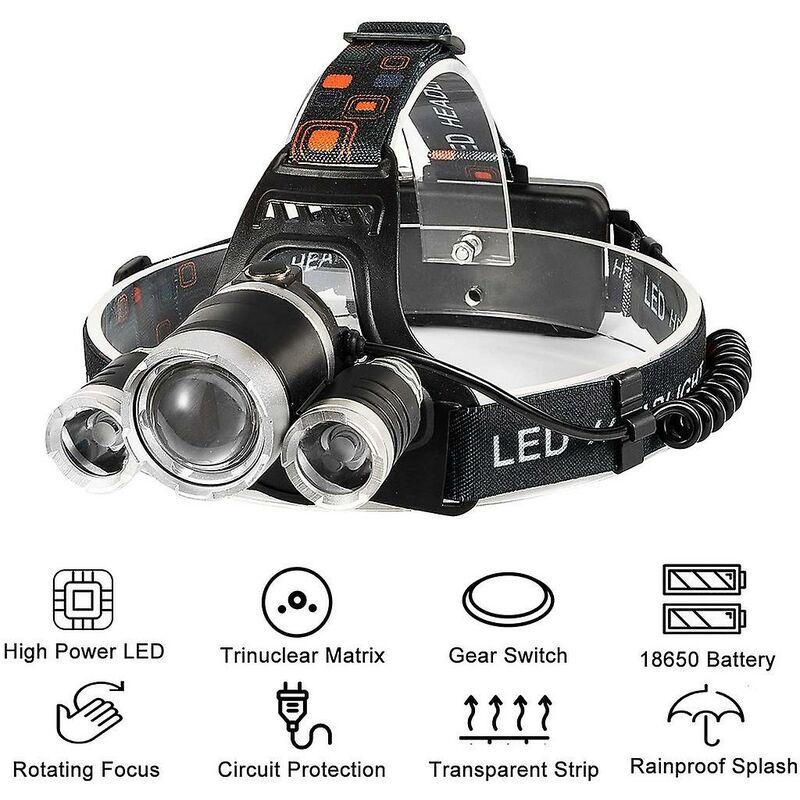 Torcia frontale a LED super luminosa: con 3 torce frontali con perline LED XML, fino a un massimo di 5000 lumen, la regolazione della luminosità offre fino a 300 iarde di visibilità, offrendo una visione molto più periferica, ideale per la lettura notturna, auto riparazione, pesca, corsa, campeggio, escursionismo, ciclismo, arrampicata o altre occasioni di illuminazione ravvicinata. Luci anteriori con 4 modalità di illuminazione: alta luminosità-luce media-luce scarsa-stroboscopica, Assicurati di ottenere l'esatto livello di luminosità di cui hai bisogno per qualsiasi utilizzo con il controllo a un pulsante, molto più conveniente, la modalità stroboscopica SOS ti aiuta ad affrontare le emergenze. Meno pressione sulla testa. La fascia elastica e antiscivolo consente a bambini e adulti di avere una vestibilità comoda. Le cinghie regolabili consentono di effettuare regolazioni rapide per adattarsi alle dimensioni della testa, del cappello o del casco, perfette per chiunque abbia bisogno
